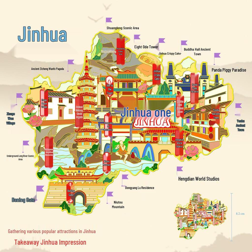 Jinhua Kultur- & Kreativ-Metall-Kühlschrankmagnet - Youbu Antike Stadt, Hengdian Shuanglong Landschaftsgebiet Souvenir