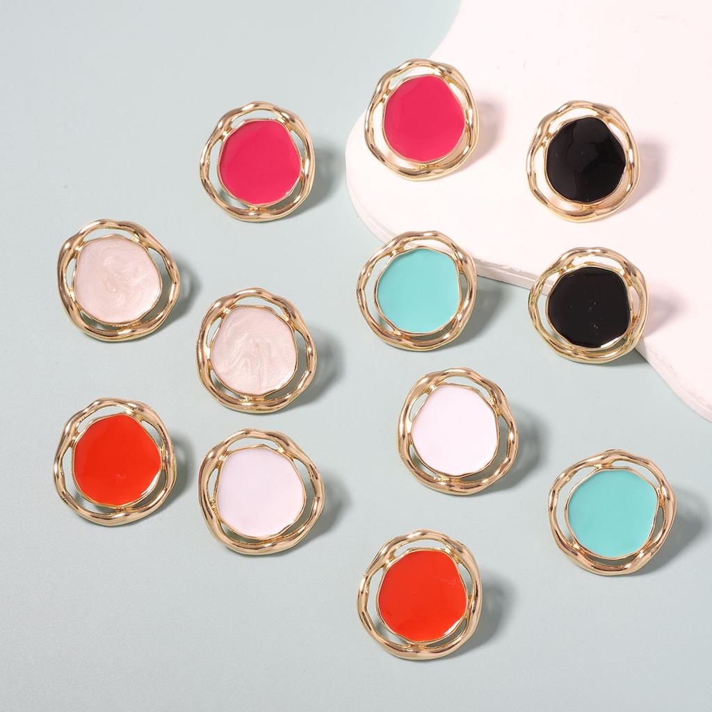 Niche creative design sense dopamine multi-color irregular geometric circular alloy oil drip beautiful women's earrings
