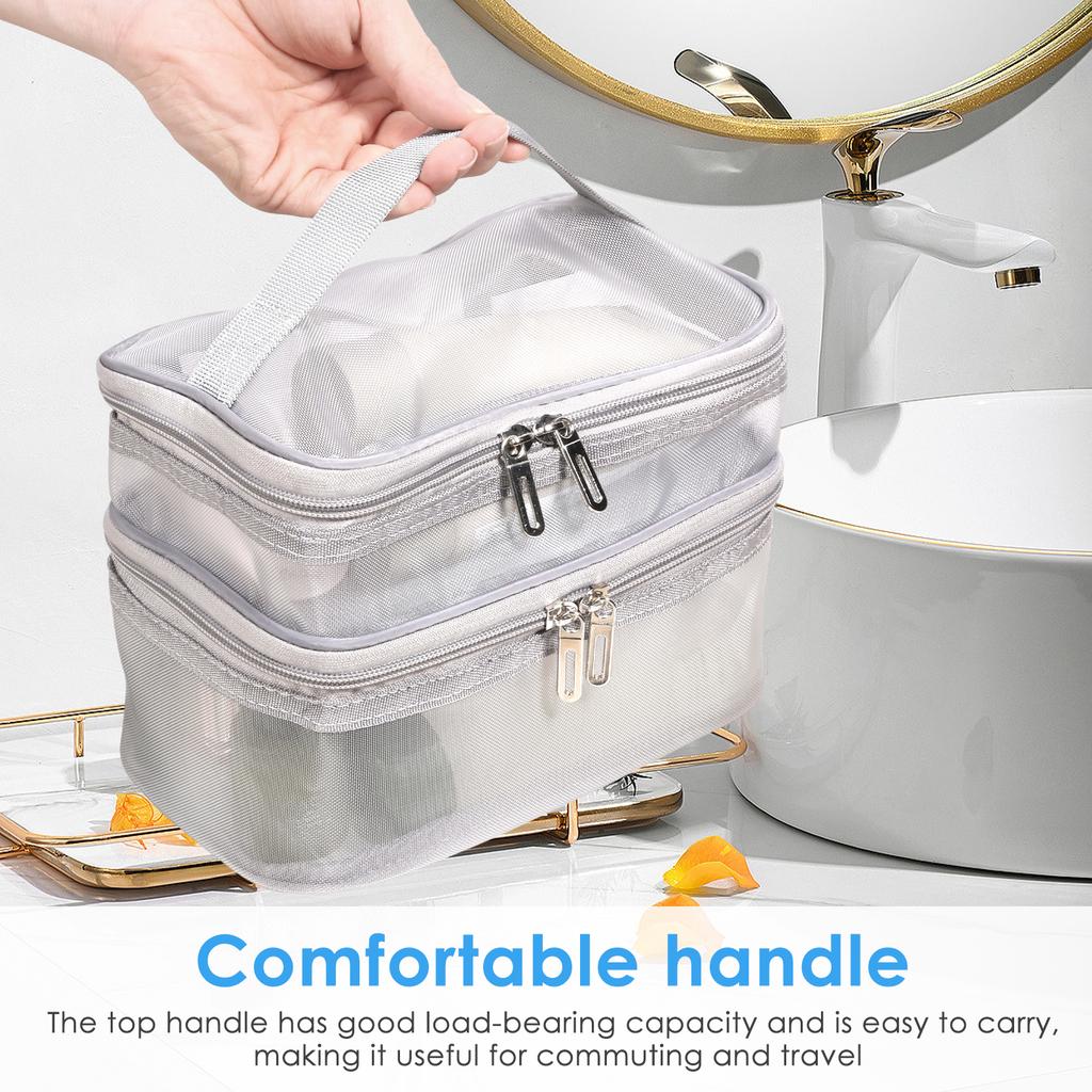 Kosmetiktasche mit großem Fassungsvermögen aus Mesh, doppellagig, transparent, Reise-Kulturbeutel mit Griff, tragbarer Make-up-Organizer für Damen