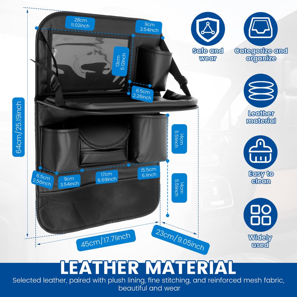 Autositz-Rückenlehnen-Aufbewahrungstasche Faltbarer Esstisch Tablettablage Hängende Tasche Große Kapazität Mehrere Taschen Rücksitz Leder-Organizer