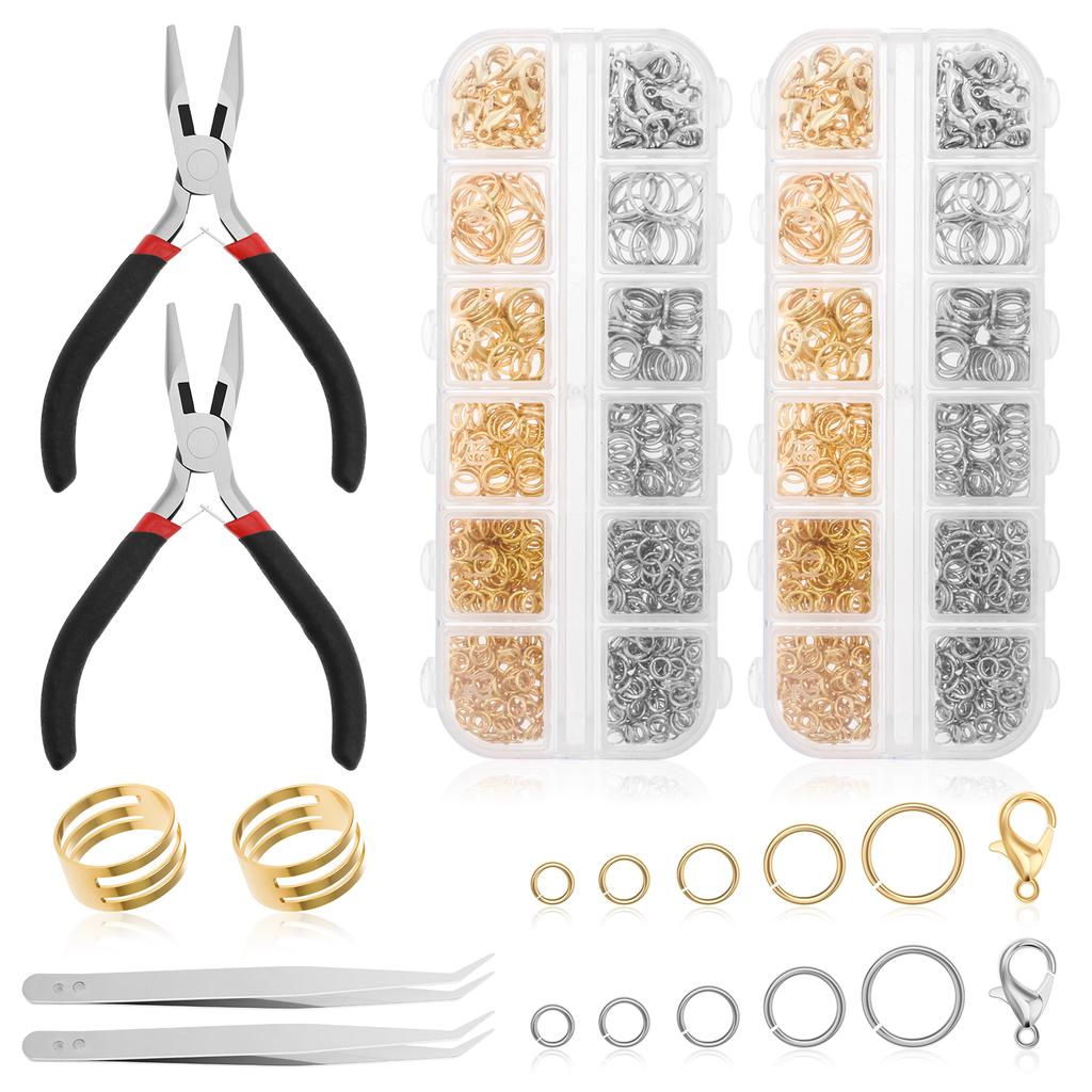 Silberne und goldene Biegeringe mit Zangen und Pinzetten Schmuckreparaturset DIY Halskettenreparaturwerkzeug Tragbares Schmuckherstellungsmaterial