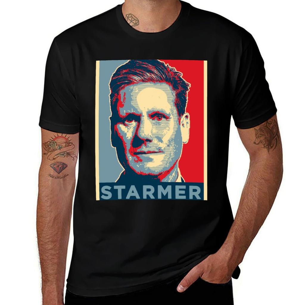 Keir Starmer - Labour Kunst T-Shirt T-Shirt Herren 100% Baumwolle Luxusmarken T-Shirts für Mann Pack weißes T-Shirt Mann Designer T-Shirt