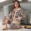 Pajamas Women'S Winter Three-Layer Thickened Fleece Woven Cotton Padded Autumn And Winter Coral Fleece Outer Wear Warm Loungewear