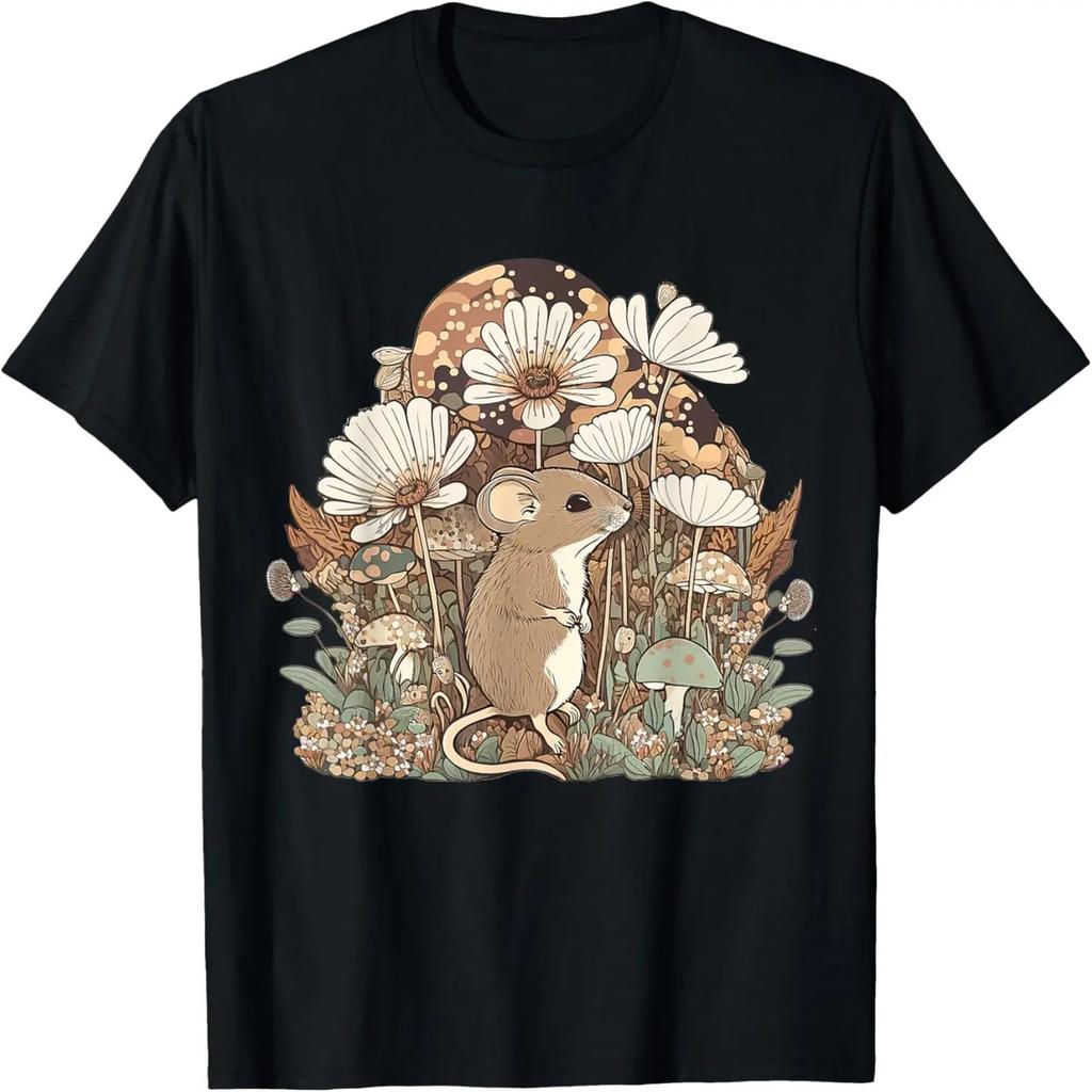 Niedliches Cottagecore Blumen Maus Ästhetik Mädchen Frauen Grafik T-Shirt