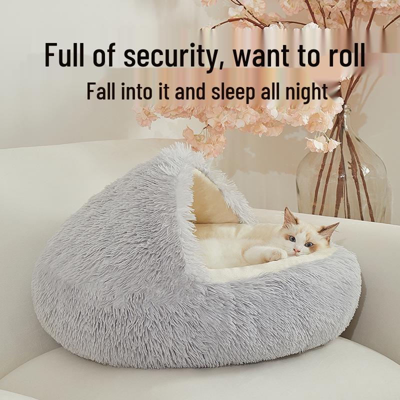 Cozy Plush Cat and Dog Bed: Year-Round Semi-Enclosed Shell Design for Warmth and Comfort