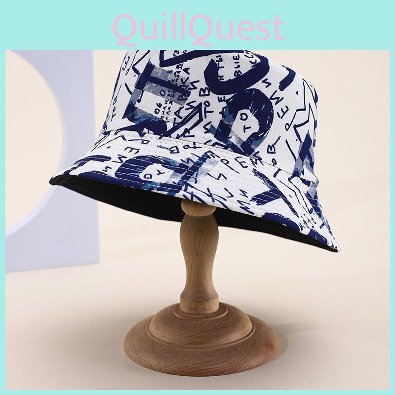 Baumwollmischung Sommer Fischerhut Buchstabenaufdruck Breite Krempe Sonnenschutz Wind