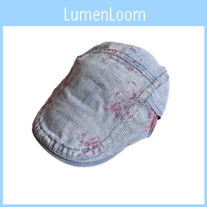 Denim Washed Retro Beret With Pattern Design For Womens Daily Casual Outing
