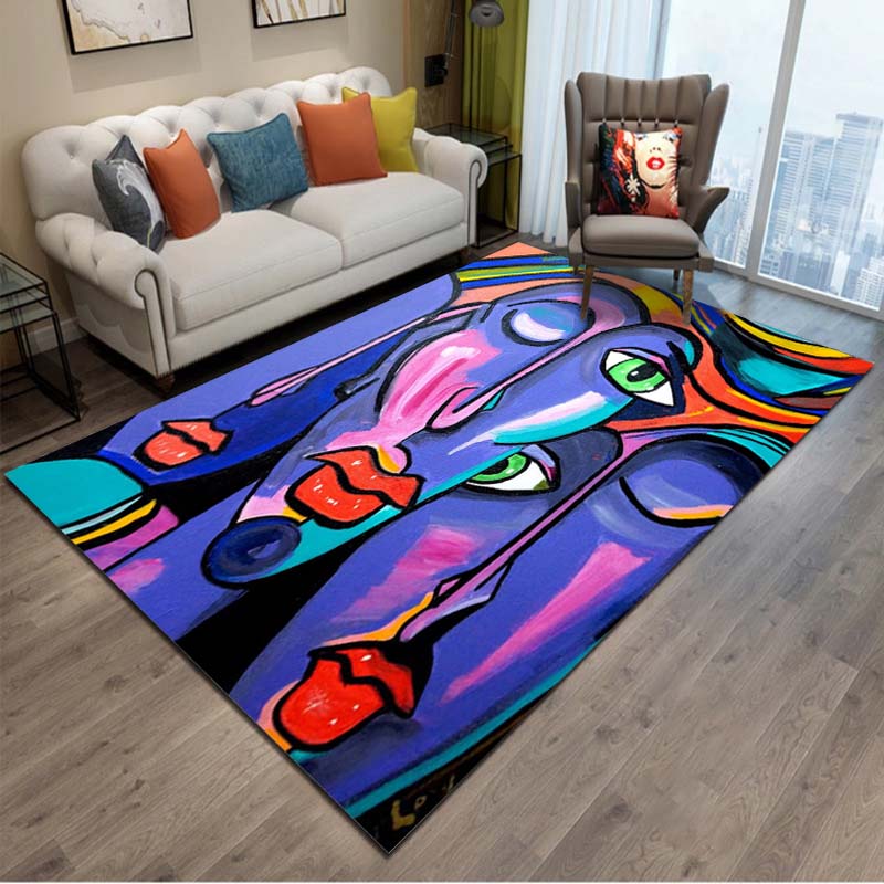 15 Größen Abstraktes Picasso Gemälde Künstlerische Teppiche für Schlafzimmer Bodenteppiche Wohnzimmer Heimdeko Weiche Flanellmatte Bereichsteppich Geschenk