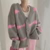 V-neck Fashion Knitted Striped Cardigan Sweater Autumn Women Office Loose Jackets Winter Elegant Casual Long Sleeve Coats Knitwear Top Clothing