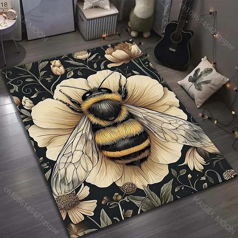 1 Stück Teppich im Retro-Stil mit Bienen- und Blumendruck, moderne Heimdekoration, Bereichsteppich, Wohnzimmer, Schlafzimmer, Bettseite, Sofa, Gang, Korridor, Bodenmatte