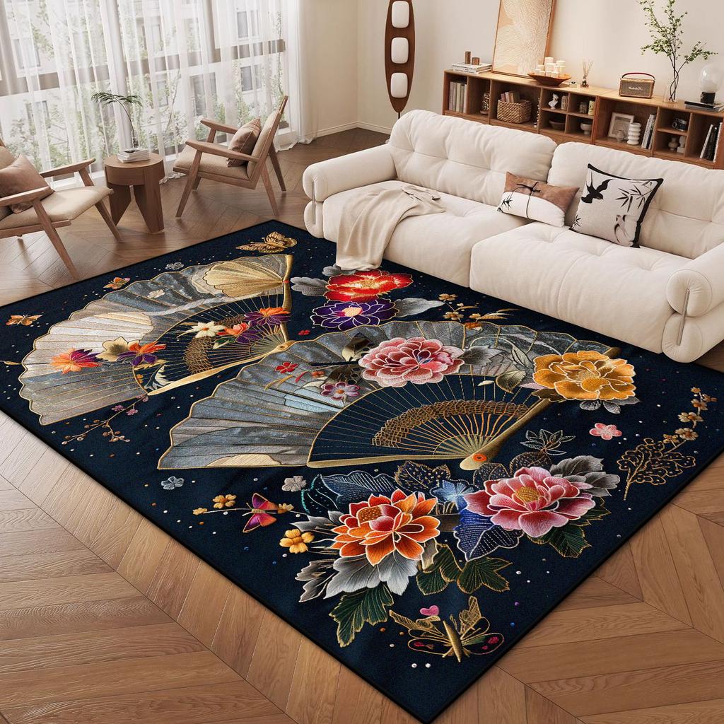 Orientalischer Luxus Dekor Wohnzimmer Teppiche Blumendesign Weiche Raumdekoration Ästhetischer Schlafzimmerteppich Arbeitszimmer Rutschmatte Leicht zu reinigen