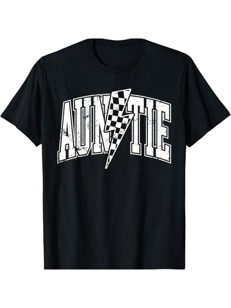 Tante Hosting Rennwagen Boxencrew Schachbrettmuster Geburtstags-T-Shirt
