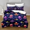 Cartoon Ozeanfisch Bettbezug Marine Thema Bettwäscheset Einzelbett für Jungen Mädchen Dekor Mikrofaser Meer Unterwasserwelt Bettdeckenbezug