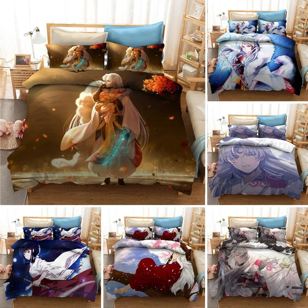 3D Gedruckte Anime Inuyasha Bettbezug Sesshoumaru Bettwäscheset Doppel Einzel Voll Queen King Erwachsene Kinder Bettwäsche Steppdeckenbezug