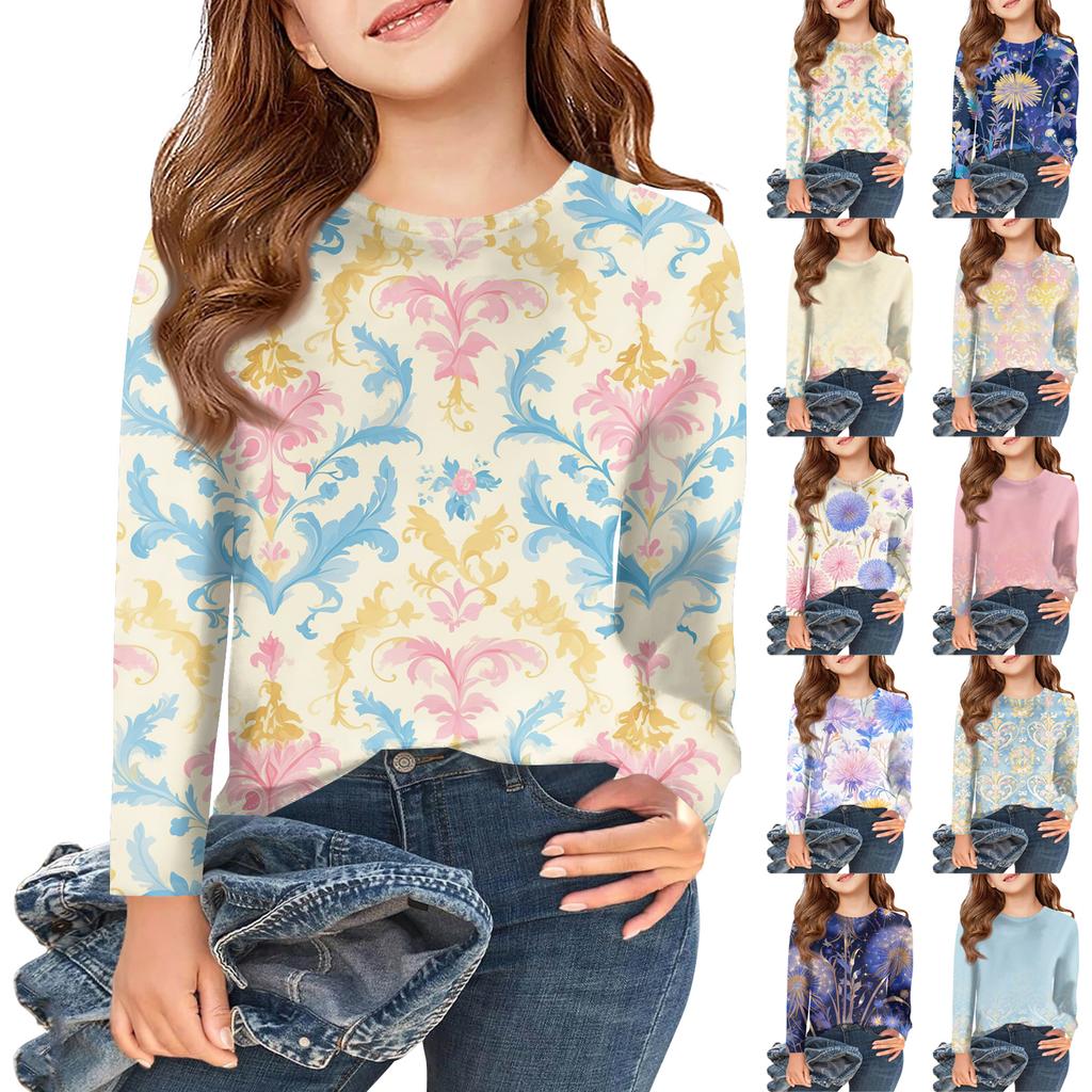 Mädchen Langarm T-Shirts Kinder Herbst Tops Rundhals Bedruckt Basic T-Shirts