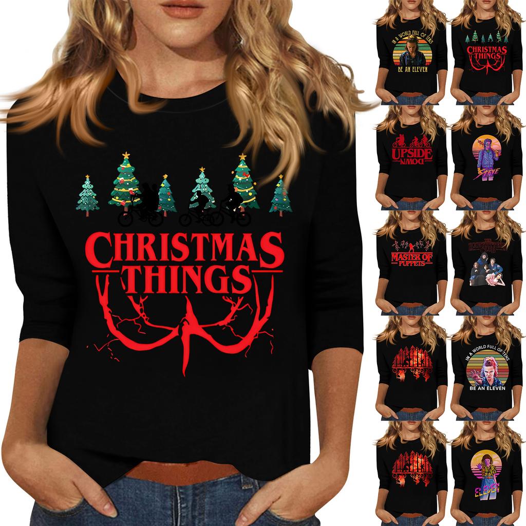 3/4-Ärmel Oberteile für Damen T-Shirt Lässig Print Oberteile T-Shirt Rundhals Pullover Bluse