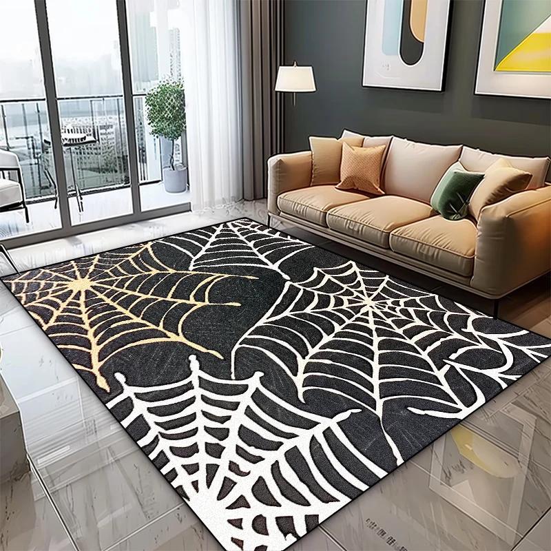 Abstract Web Area Rug – Artistic Spider Design Living Room Carpet, Non-Slip Oversized Gaming Room Floor Mat for Bedroom