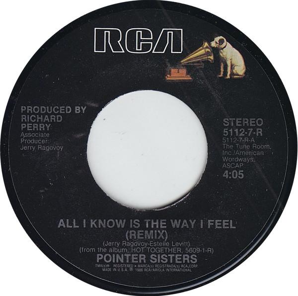 7inch Record POINTER SISTERS All I Know Is The Way I Feel Remix 51127R RCA 1987 US Dance Electronica Used