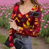 Damen Winter Slim-Fit Baselayer T-Shirt Modischer Druck V-Ausschnitt Pullover Langarm-Oberteil