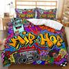 Graffiti Bettbezug Hip Hop Street Culture Print Bettwäscheset Mikrofaser Bunt Überlappende Blockige Buchstaben Kunst Bettdeckenbezug