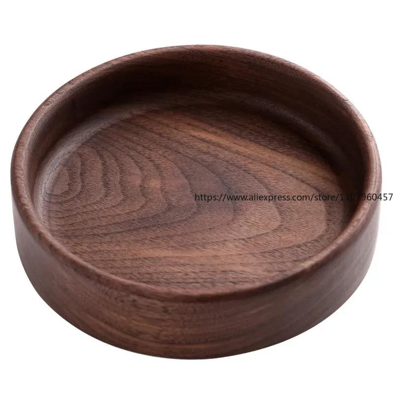Luxus Walnuss Massivholz Trocken Serviertablett Snackteller Rund Holz Obst Süßigkeiten Brot Aufbewahrungsplatte Dekoration Kaffeetisch Col