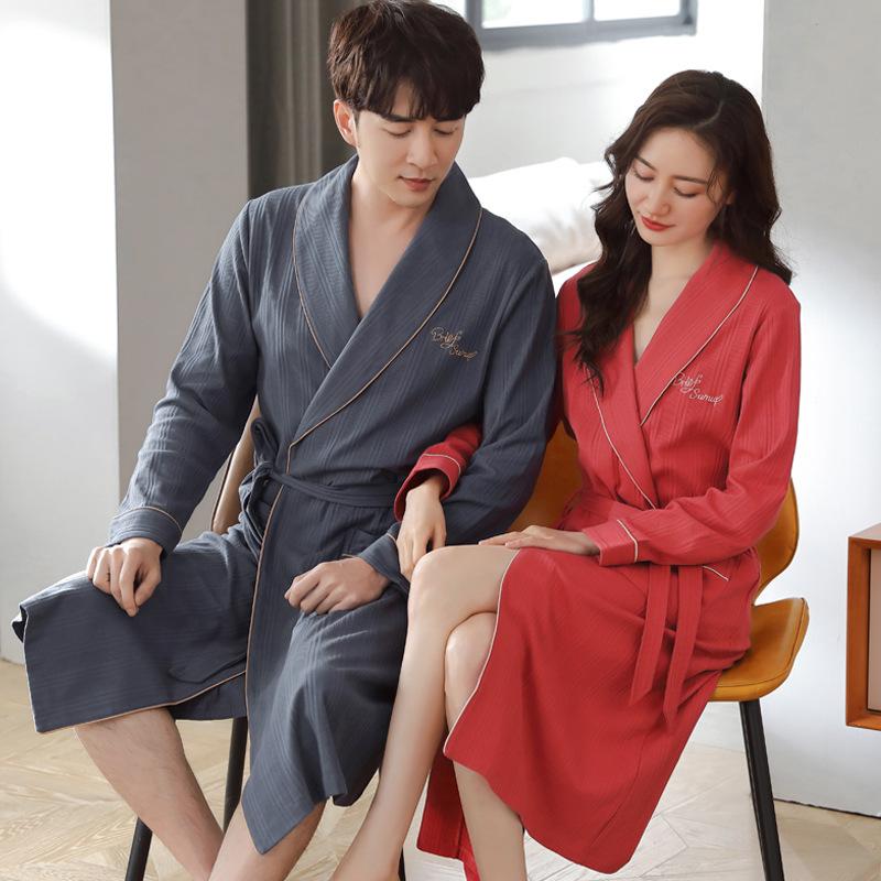 Couple Nightgown Women'S Pajamas Spring And Autumn Cotton Long-Sleeved Bathrobe Long Men'S Cotton Bathrobe Dressing Gown