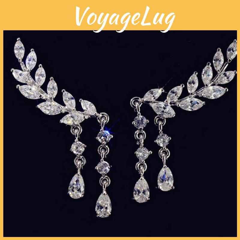 Zircon Crystal Women Leaves Tassel Drop Earrings Dangle