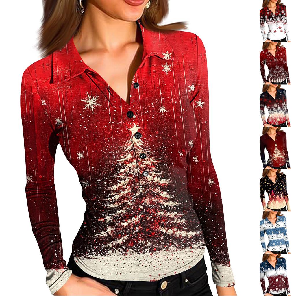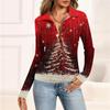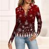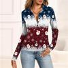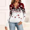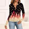Damenmode Lässig Bedrucktes V-Ausschnitt Langarm Knopfleiste Oberteil