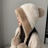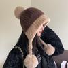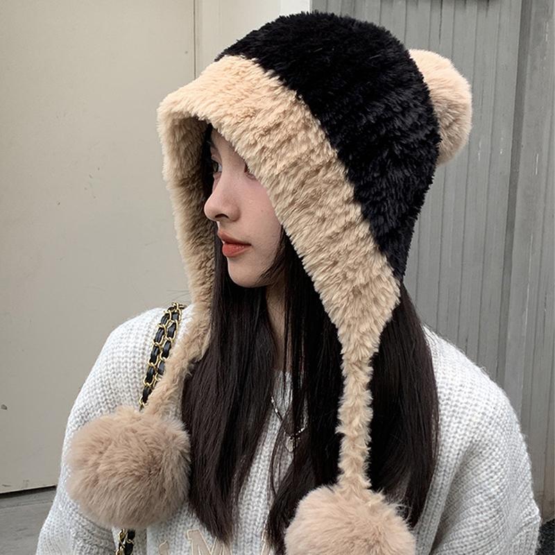 Großer Bommel Flauschiger Pelz Ohrenwärmer Mützen Mütze für Frauen Weiblich Weich Plüsch Winter Warm Gestrickt Plüschmütze Outdoor Schnee Ski Mütze