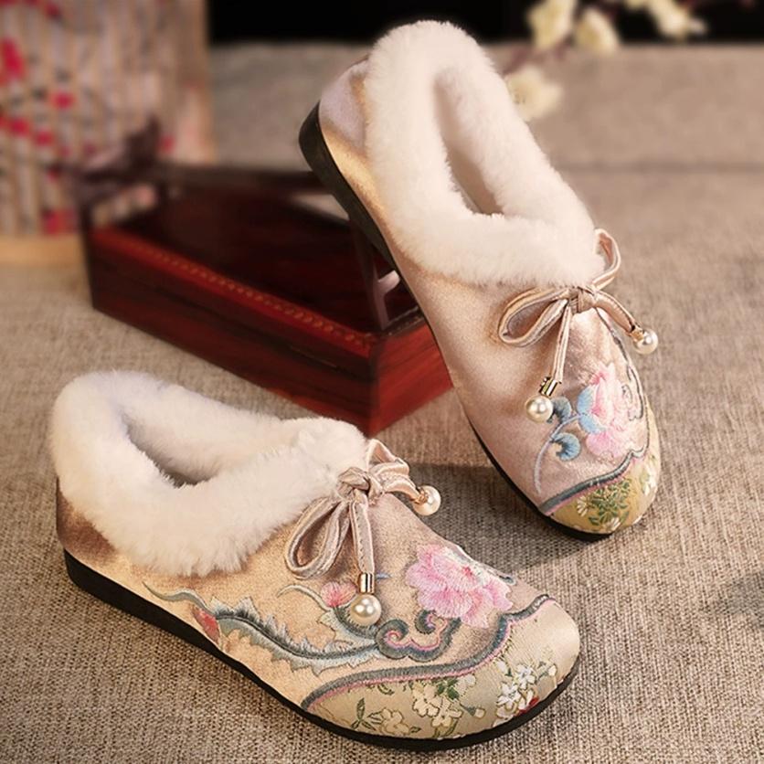 Autumn and Winter Retro Handmade Cloth Shoes, Women's Casual Embroidered Cotton Shoes, Women's Plus Velvet Winter Shoes, Plush Shoes