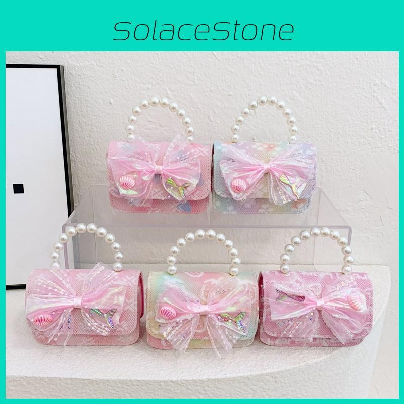 Adorable Butterfly Knot Design Children's Handbag Stylish Pearl Handle For Kids