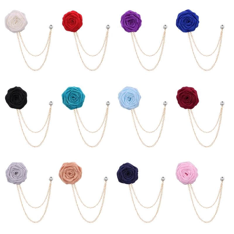 Bridegroom Wedding Brooches Cloth Art Rose Flower Lapel Pin Well-designed Badge Tassel Chain Chest Brooch Fashion Badge