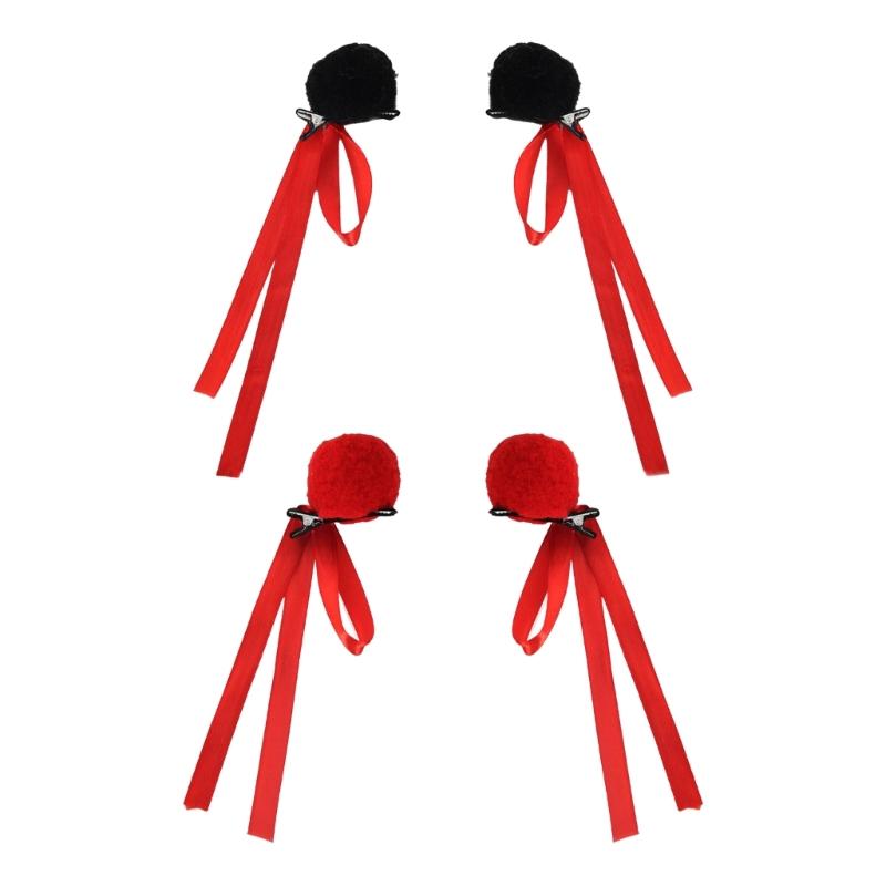 Children's Ribbon Hair Clip Plush Hair Bun Headwear Movie Ne Zha Style Hairpin Party Festival Clothing Accessories