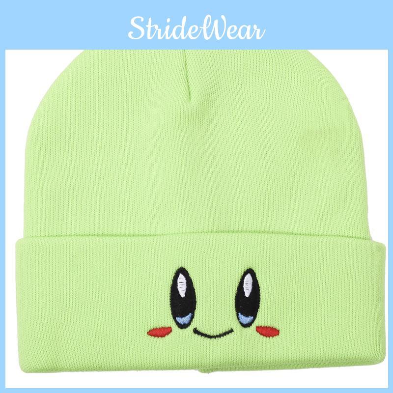 Strickmütze mit Stickerei eines lächelnden Gesichts mit großen Augen für sommerliche Freizeitkleidung