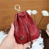 Retro Echtleder Münzbeutel Beutel Kordelzug Geldbörsen Autoschlüssel Tasche Einfache Hängetasche