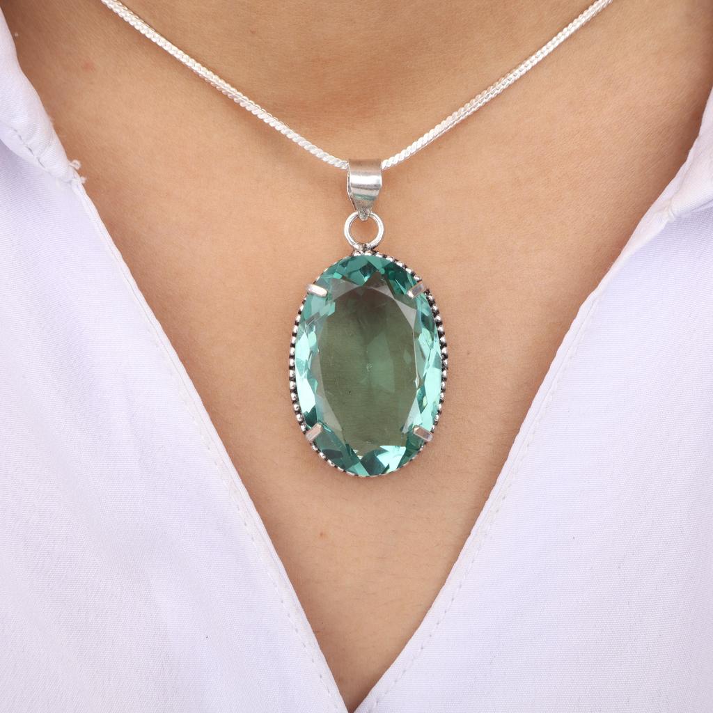 Himmelblauer Apatit Edelstein Silberanhänger 1,75", 925 Sterlingsilber Handgefertigter Schmuck, Partywear Anhänger Geschenk für Frauen PP-63-9
