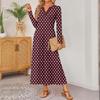 Damen gepunktetes langärmeliges bequemes lockeres Kleid, elegantes Kleid