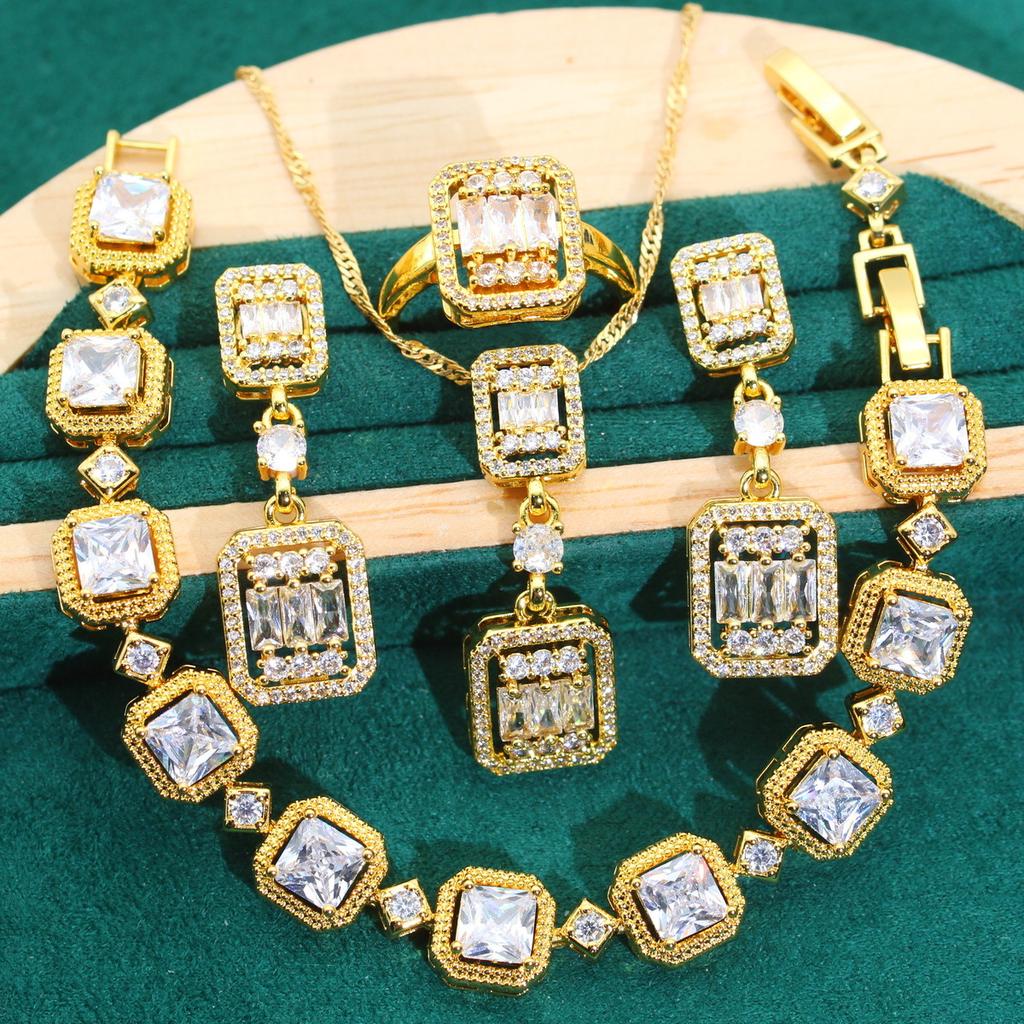 New Jewelry Sets In Europe and The United States Atmosphere Full of Zircon Lady Set Decoration Earrings Ring Gold Jewelry Set