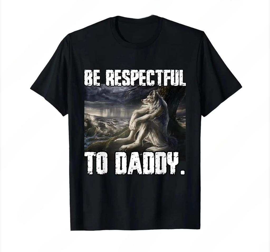 Sei respektvoll zu Daddy Lustiges Alpha Werwolf Lustiges Wolf Meme T-Shirt Überwiegend Weich Kurzarm T-Shirt Rundhals T-Shirt Frauen