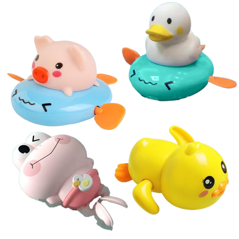 4-Piece Water Toy Set, Cute Wind-Up Toy for Bathtime, Rainbow Shower, Pig, and Turtle Designs, Popular for Babies and Kids, Birthday Gift, Baby