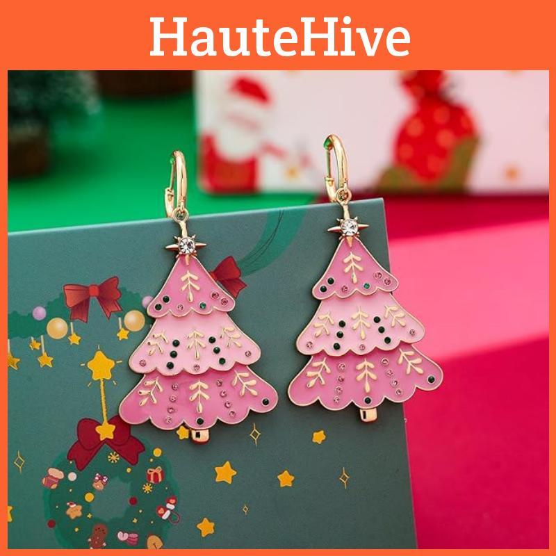 Adorable Pink Christmas Tree Earrings And Necklace Set Perfect Party Accessory For Women