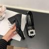 Women's Rhinestone Buckle Chunky Heel Patent Leather Shoes - 2025 Early Spring Collection