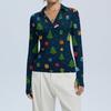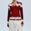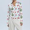 Damenmode Lässig Weihnachts-Print V-Ausschnitt Langarm Knopfleiste Oberteil