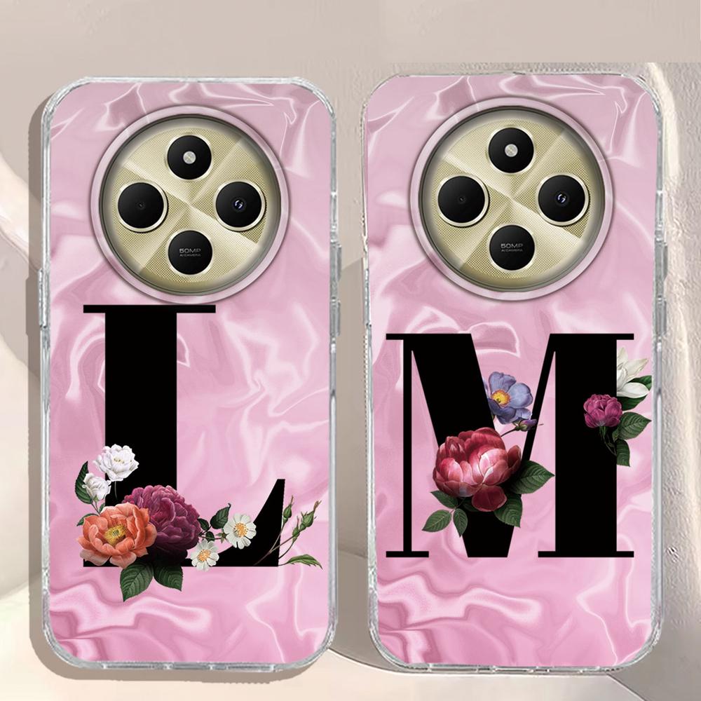 A-Z Schwarzer Buchstabe Pfingstrose Blume Stoßfestes Handyhülle Für Xiaomi Redmi Note 14 15 Pro+ Plus 15C 14C Silikon Paar Hülle Abdeckung