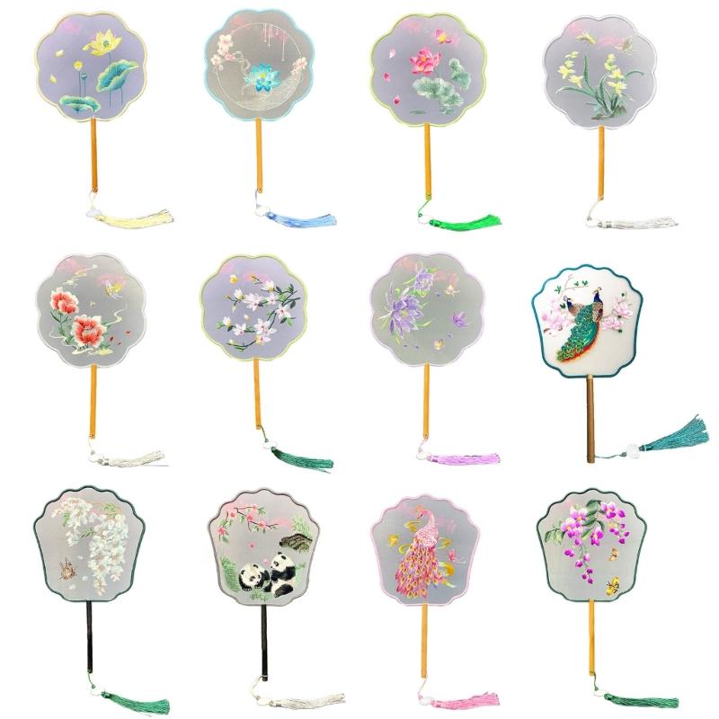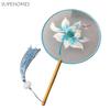 Chinese Styles Ancient Embroidery Fan Decorations Long Handle Tassels Double Side Hand Fan for Womens Girl Performances