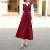 ZANZEA Women Casual Round Neck Short Sleeve Stripe Splice Dress