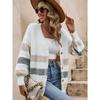 Herbst- und Winter Damen Plüsch Kontrastfarben Gestreift Knopf Laternenärmel Wollstrickjacke