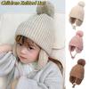 Kinder Mütze Verdickte Wollstrickmütze mit Bommel-Dekor Verlängertes Ohrenklappen-Design Fleecefutter Warme Wintermütze