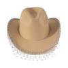 Trendy Cowboy Hat Denims Hat with Sparkling Rhinestones and Fringe Detail for Outdoor Activities Parties Halloween Hat