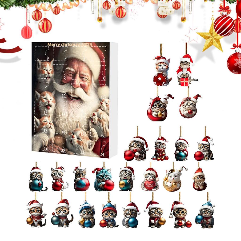 2025 Katze Weihnachten Adventskalender 24 Tage 2D Acryl Anhänger Countdown Kalender Niedliches Geschenk für Kinder Erwachsene Weihnachtsbaumschmuck